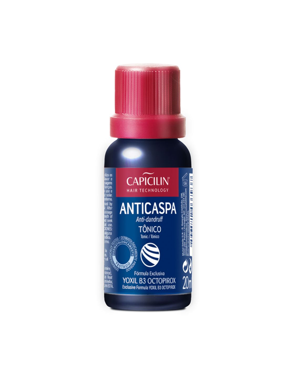 Como Aplicar Tónico Capilar Anticaspa Capicilin? Após a utilização de shampoo e condicionador anticaspa, ou máscara, aplique a ampola no couro cabeludo, massajando em movimentos circulares. Não é necessário enxaguar.