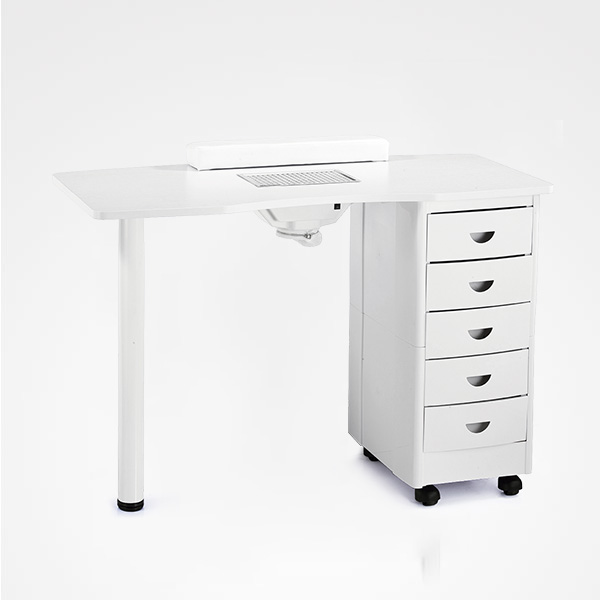 Mesa de manicure com almofada, aspirador de pó e 5 gavetas. É projetado para técnicas em unhas profissionais.