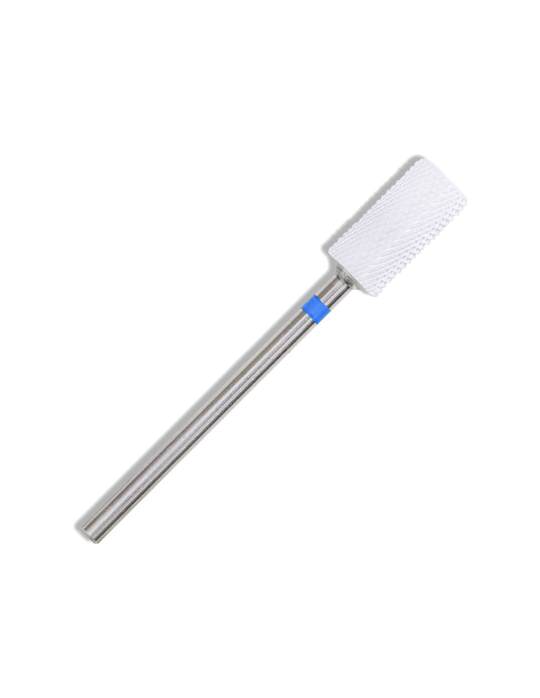 Broca metálica com cabeça retangular texturada branca e haste com anel azul