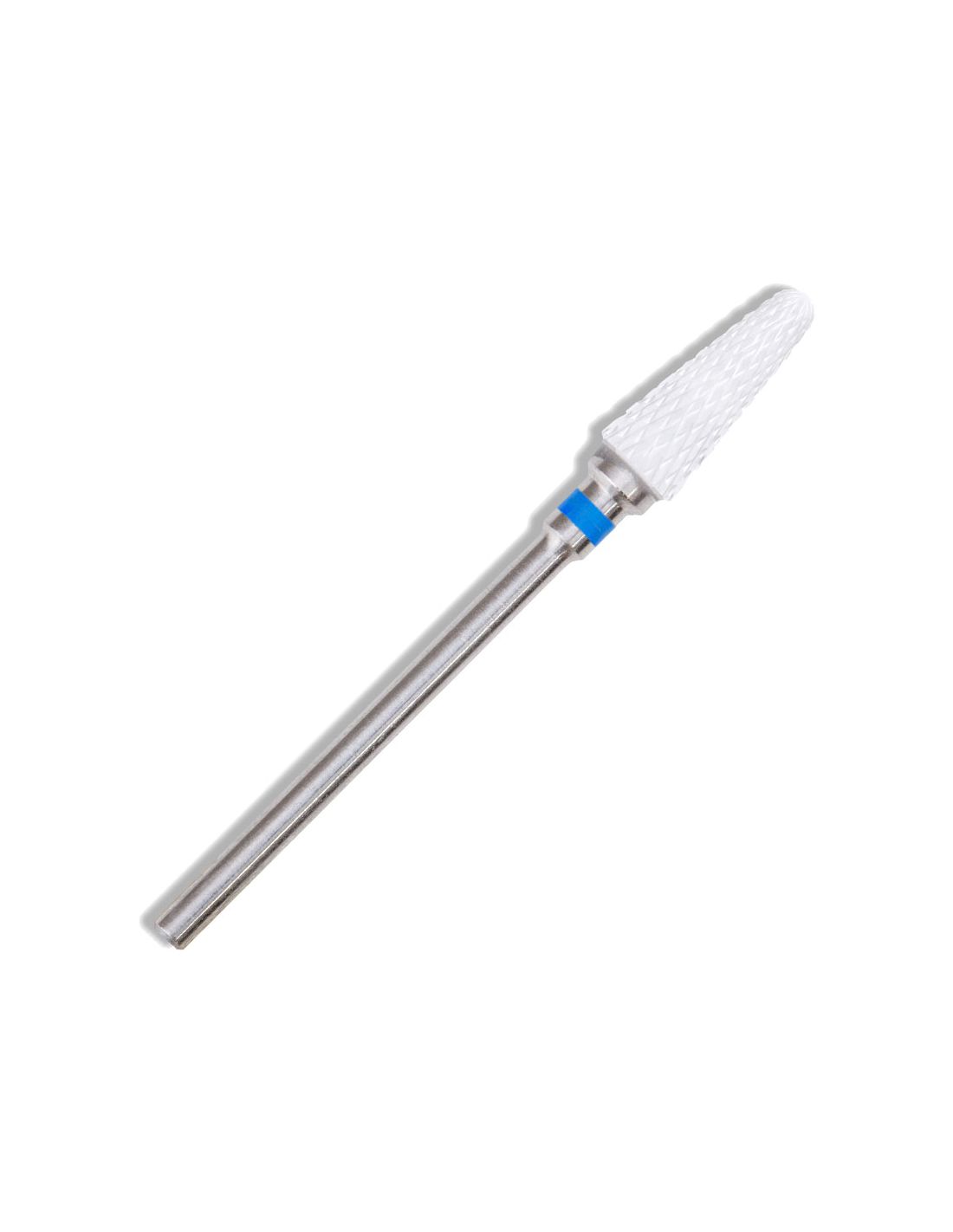 Broca de manicure em cerâmica branca cônica com faixa azul