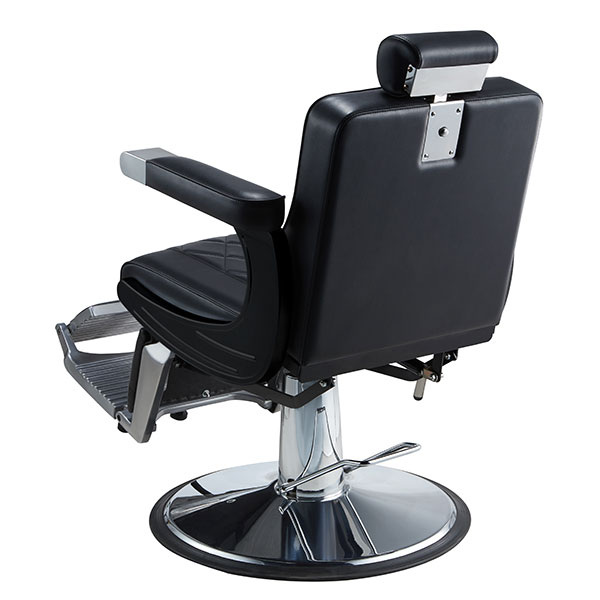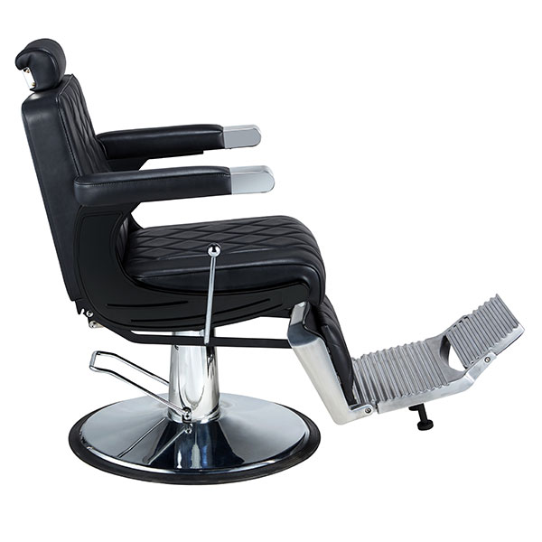 Base com hidráulico, suporte de pés, costas reclináveis e apoio de cabeça ajustável.