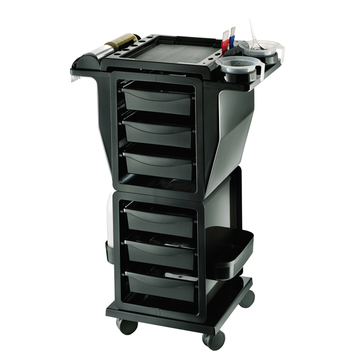 Carrinho especial para todos os tipos de trabalho de tingimento e descoloração Com capacidade para várias paletes, coquetéis, tigelas e duas carcaças especiais para papel alumínio. Leve e muito controlável. Com rodas giratórias. 38 x 62 x 92 cm