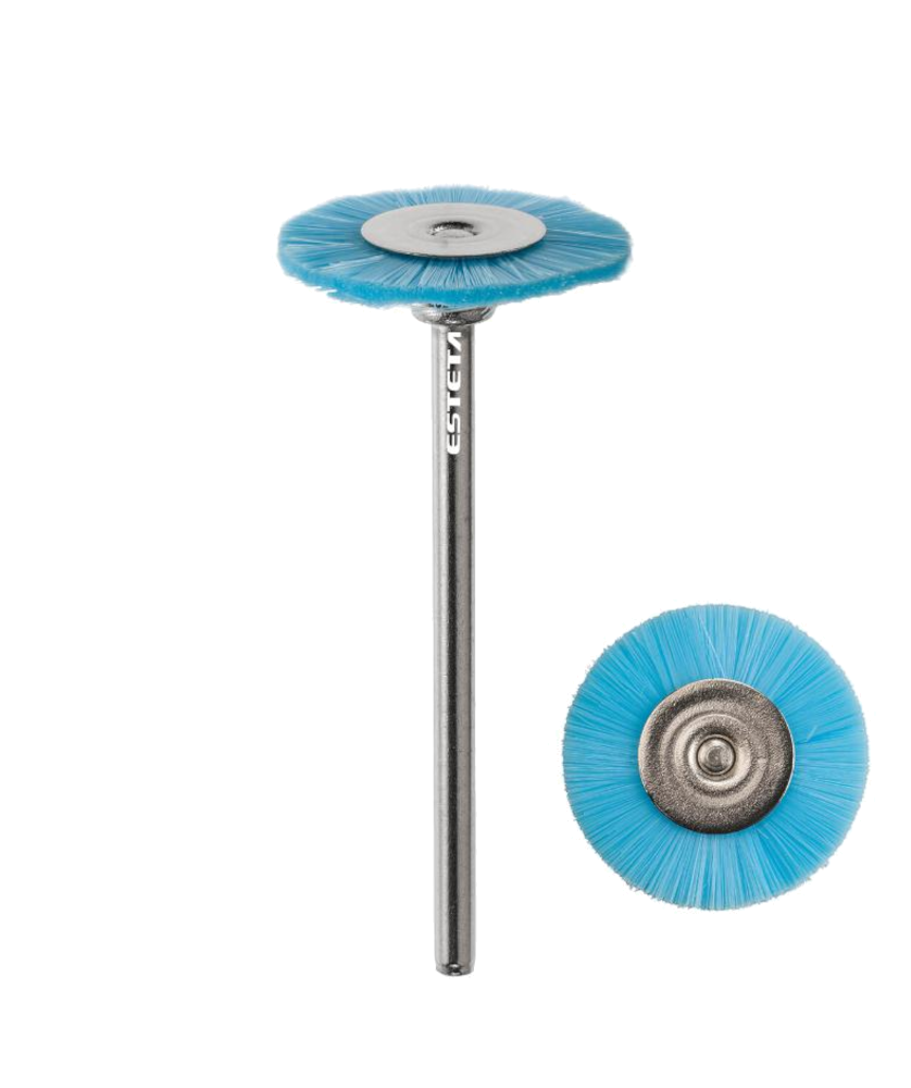 A fresa de nylon com fibras sintéticas é utilizada para limpeza e polimento de unhas. No campo do processamento de unhas, a escova de polimento turquesa pode ser usada para remover o pó na placa ungueal e na dobra da unha.