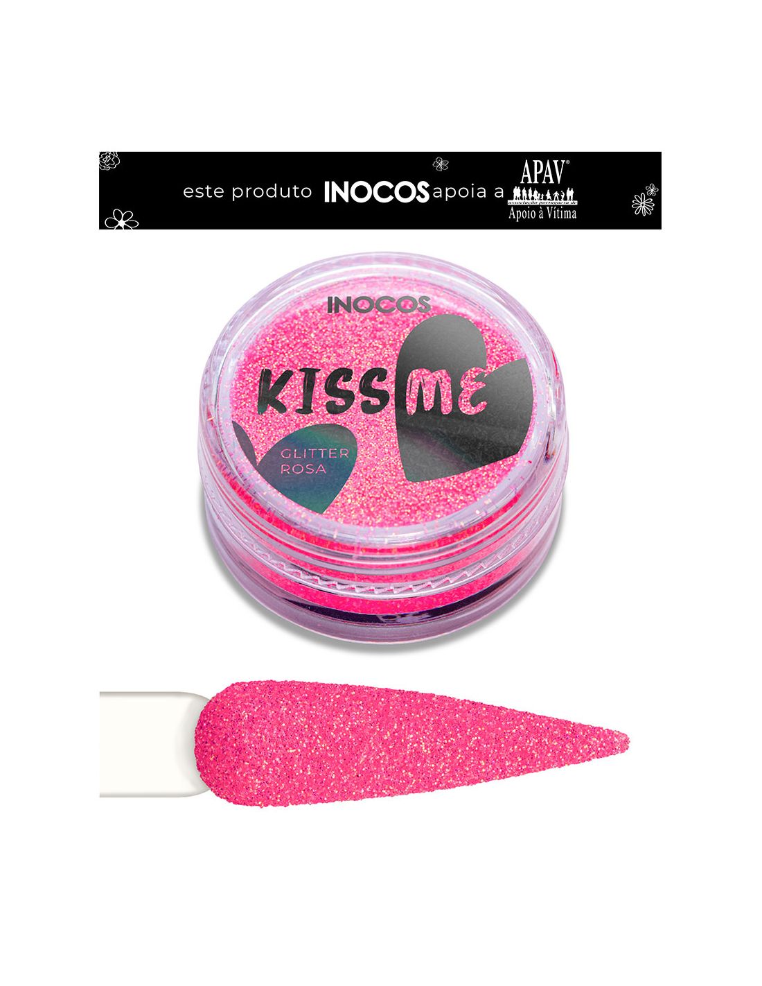 Pó Glitter Kiss Me Inocos, tom Rosa Neon ideal para Nail Art, da Coleção Amor é Amor