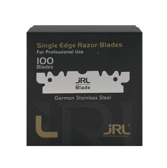 Lâminas de barbear JRL Single Edge – nitidez incomparável e qualidade superior para barbeiros profissionais. Cada embalagem contém 100 lâminas individuais fabricadas em aço inoxidável alemão, proporcionando linhas precisas e máxima durabilidade com um corte impecável.