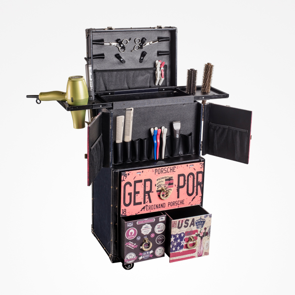 Trolley transporte, estilo único e original. Bandejas removíveis e varios compartimentos permitem que você mantenha todas as suas ferramentas perfeitamente organizadas e à mão. Transporte seu material de trabalho da maneira mais confortável e segura.