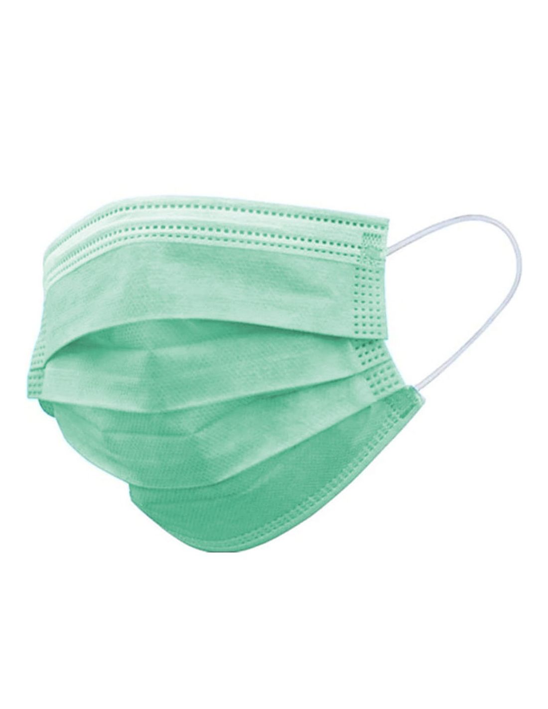 Máscaras cirúrgicas em polipropileno verde com elásticos com três camadas, embalagens de 50 unidades.