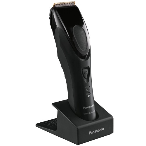 Panasonic ER-HGP62, máquina profissional, leve e prática para cabelos e barba. Funciona com bateria ou com cabo. Suporte de Carga Cómodo. Indicador de bateria baixa / indicador do estado da bateria. Conta assim com um design ergonomico e peso ligeiro. Motor linear rápido a 9800 cmp, com sistema de controlo constante para um corte preciso, suave e poderoso. O motor linear sempre fornece um corte então poderoso, independentemente da carga restante ou da espessura do cabelo. Redução de preço com borda de 45º. A combinação de revestimentos DLC e TIN atinge o dobro da duração do aço inoxidável e uma borda afiada de longa duração. Bateria de iones de litio potente, de larga duração duradoura e ecológica. Carregua em 1 hora. Até 50 minutos de corte sem fio. Seis comprimentos de corte com três pentes, desde 3mm até 15mm. Máquina Corte Panasonic ER-GP62 conta com potência de 100-240V
