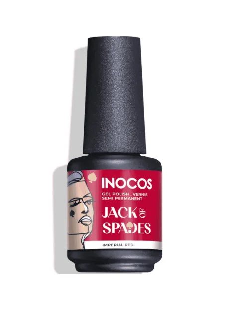 Verniz Gel Inocos Valete de Espadas na cor vermelho Imperial alia beleza e durabilidade! Ideal para quem busca uma manicure resistente e sofisticada, este tom vermelho clássico e elegante combina perfeitamente com qualquer ocasião, destacando-se pela sua fórmula duradoura e altamente pigmentada.