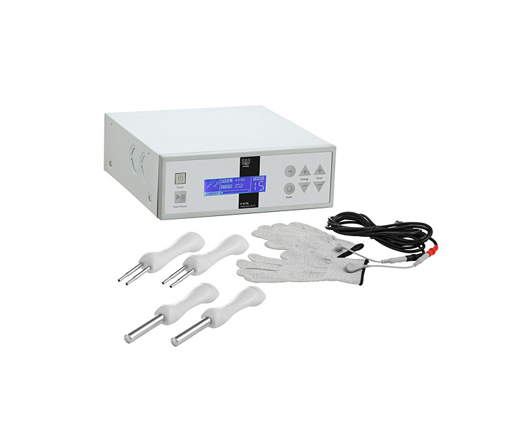 Luva de Alta condutividade e Facelift Equipamento multifuncional que ajuda a restaurar a elasticidade da pele por estimular a circulação de sangue e de fibras de colagénio, o que facilita a penetração da pele activa e contribui para a remoção de manchas da pele por massagem com luvas de elevada condutividade. O Bio-lift facial produz uma microcorrente usada para suavizar a pele e remover rugas, cicatrizes e marcas.