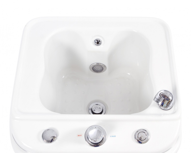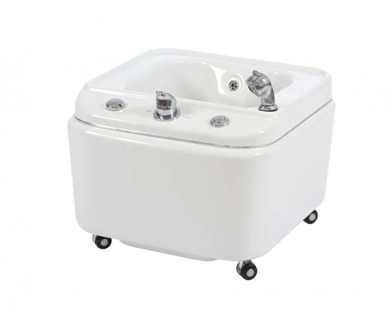 Hidromassajador com luz led e 4 rodas que facilitam a mobilidade.