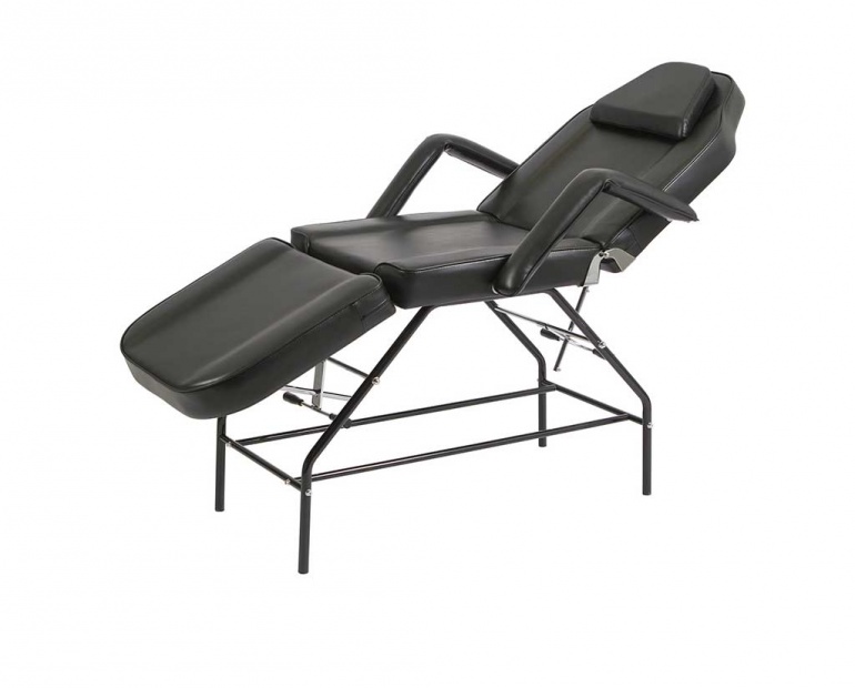 Apoios de braço removíveis e almofada do encosto de cabeça com orifício facial.