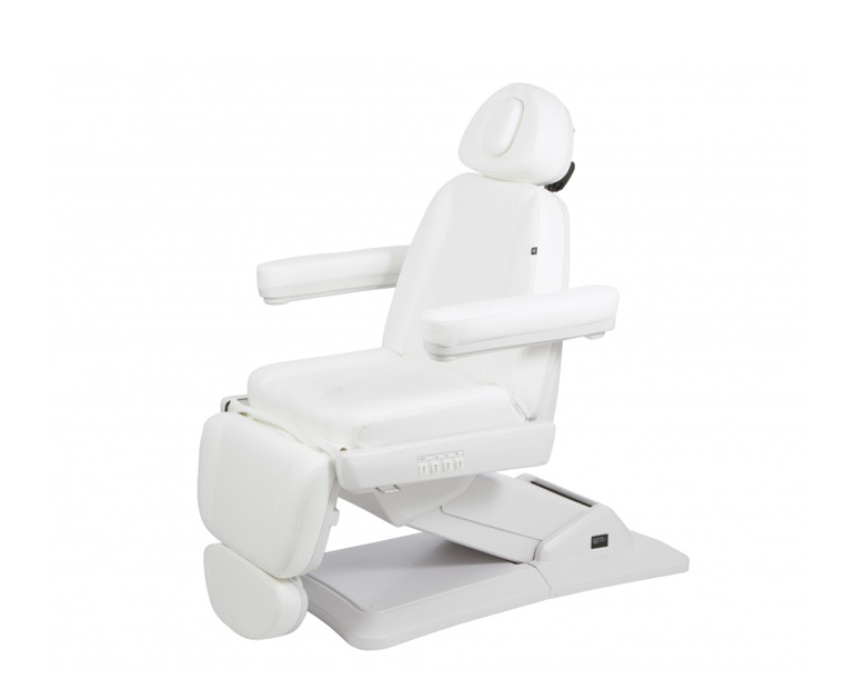Marquesa Maxi sofisticada e de alto conforto equipada com 3 motores que controlam a altura, o encosto e a inclinação do assento. Assento para pés ajustável por elevador a gás. Apoios de braço reclináveis e encosto de cabeça ajustável. Os painéis de botões embutidos no encosto, no apoio de pernas e no assento permitem um controle completo de todas as funções de qualquer ponto da cadeira. Esta versão inclui a função RESET para trazer a cadeira de volta à posição zero. Estofo em PU branco de alta qualidade que facilita a limpeza.
