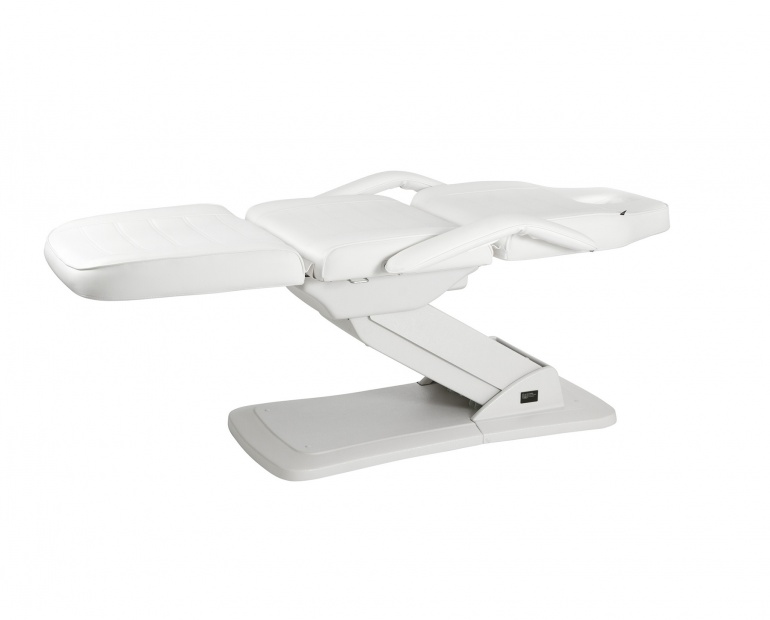 Marquesa funcional Star de 3 secções e de grande estabilidade. Equipada com 3 motores que controlam a inclinação do encosto, altura e apoio de pernas. Com apoios de braço removíveis e almofada do encosto de cabeça com orifício facial. Estofo em PU branco de alta qualidade que facilita a limpeza.