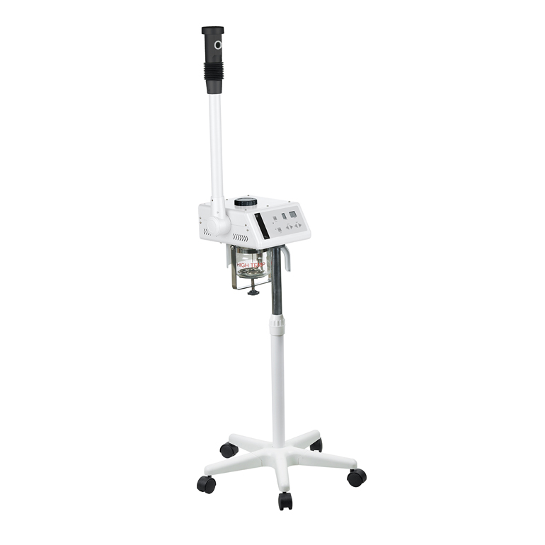 Vaporizador digital de Ozono high-end. Estrutura metálica branca resistente com braço giratório. É equipado com cabeçote giratório e orientável com recipiente para óleo aromático.