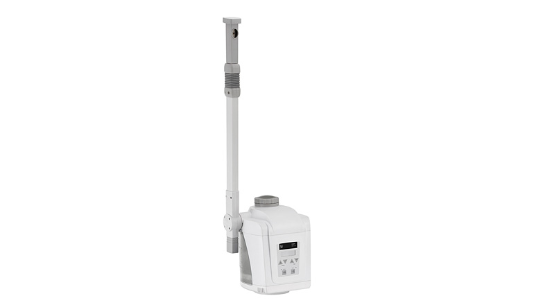 Vaporizador Digital de Ozono de alta qualidade com design moderno e funcional. Equipado com um braço giratório e uma cabeça giratória e orientável com recipiente para óleo aromático.